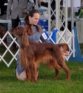 Held at the Arizona State Fairgrounds in conjunction with the Heart of the Desert Classic Cluster (and 20+ other breed specialties), the Irish Setter Club of Arizona proudly raised its banner and celebrated the following judged by Irish Setter breeder/judge Carrie Paine of Australia: